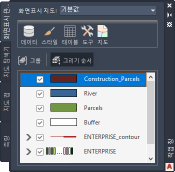 - 건축 지역 구획 도면층(ConstructionParcels)을 클릭합니다.
