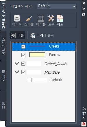 - 샛강 도면층을 선택하고 스타일을 클릭합니다.