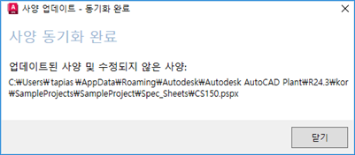 주: 사양을 카탈로그와 동기화하려면 사양 파일이 닫혀 있어야 하며 사양 파일에 대한 독점적 액세스 권한이 필요합니다.