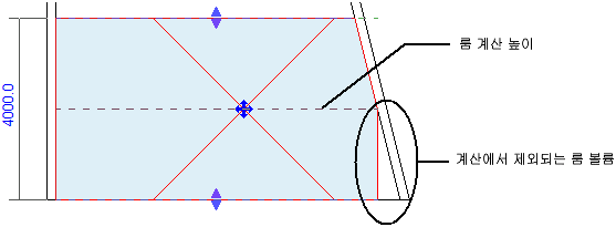 예를 들어, 룸 경계 요소가 룸의 상위 경계에 닿지 않을 경우 요소 위 공간이 룸 체적에 포함되지 않을 수 있습니다.