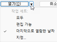 열기 대화상자에서 작업 세트를 열려면