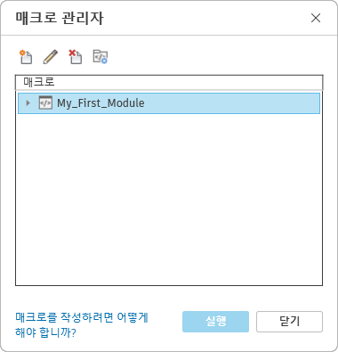 모듈(모듈에 포함된 매크로)을 수정하려면 모듈을 선택하고