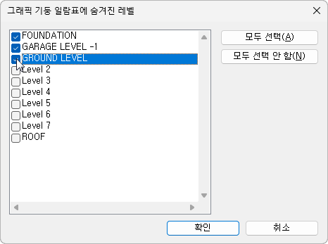 - 해당 레벨 이름 옆의 확인란을 클릭하여 숨길 레벨을 선택합니다.