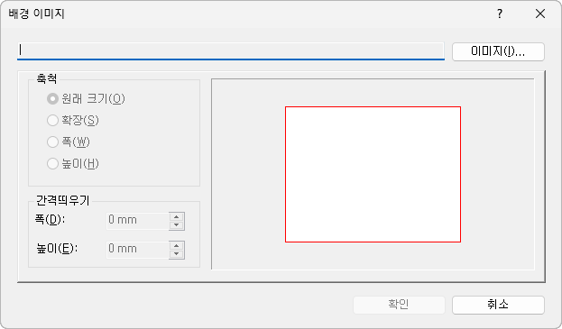 - 배경 이미지 대화상자에서 축척 및 간격띄우기를 지정하고 확인을 클릭합니다.