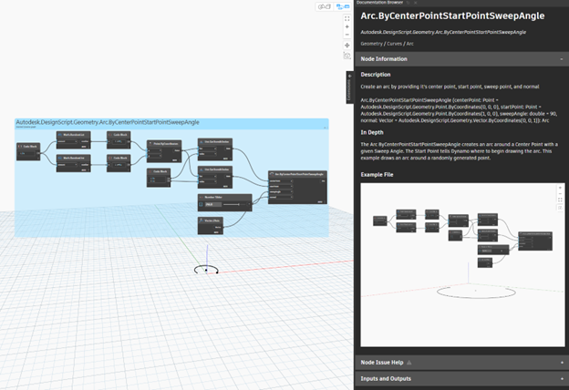 Dynamo 문서 탐색기는 여러 설정, 기능, 노드 등 다양한 Dynamo 주제에 대한 정보를 찾을 수 있는 Dynamo 인터페이스의 패널입니다. Dynamo 내에서 지침을 제공하므로 더 자세히 알아보기 위해 외부 브라우저로 이동할 필요가 없습니다. 문서 탐색기는 초보자부터 고급 Dynamo 사용자까지 문제를 해결하고 더 많은 정보를 바탕으로 노드를 선택할 수 있도록 도와주는 훌륭한 도구입니다.