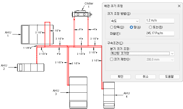 다음 이미지는 다양한 순환수 파이프 크기 조정 방법의 결과를 나타냅니다.