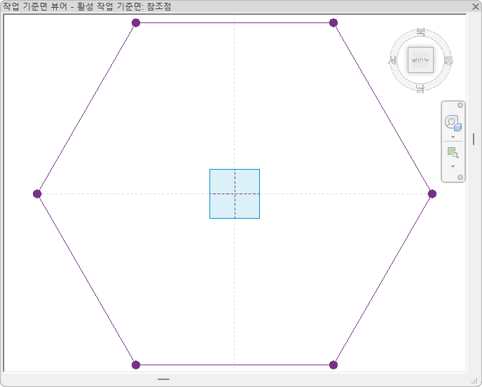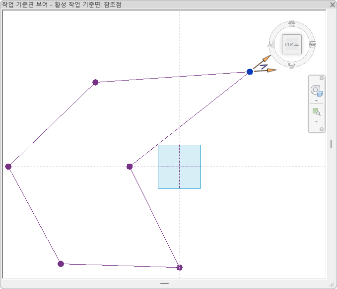작업 기준면 뷰어는 프로젝트 환경의 모든 모델 뷰에서 사용할 수 있습니다. 기본 방향은 마지막 활성 뷰의 활성 작업 기준면입니다.
