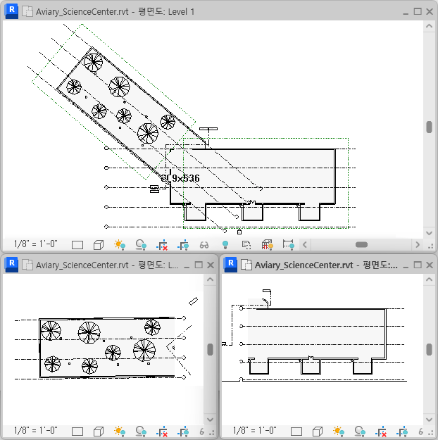 기준은 이제 절단 기준면이 선택한 스코프 박스와 교차하는 뷰에만 표시됩니다. 뷰의 절단 기준면이 스코프 밖에 놓이는 경우 연관된 기준은 뷰에 표시되지 않습니다.