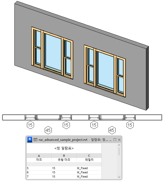 패밀리를 내포하고 공유하는 경우 공유된 패밀리를 개별 인스턴스(instance)로 일람표를 작성할 수 있습니다. 내포 및 공유된 패밀리로 구성된 패밀리를 사용하면 내포된 패밀리에 있는 각 인스턴스(instance)의 일람표를 별도로 작성할 수 있습니다. 일람표 내에서, 내포된 패밀리의 각 인스턴스(instance)에 번호를 재지정할 수 있습니다.