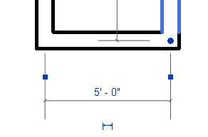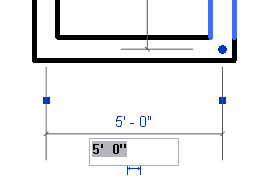 Revit에서 임시 치수를 표시합니다. (치수에서 잘못된 참조점을 사용하는 경우 파랑 사각형(치수 보조선)을 원하는 참조점으로 끕니다.)