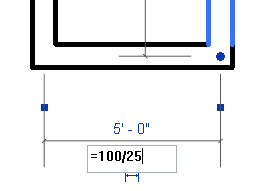 예를 들어 벽을 스케치할 때 벽의 임시 치수에 대해 수식을 입력할 수 있습니다. 등호로 수식을 시작한 다음 일반적인 수학 구문을 사용합니다.