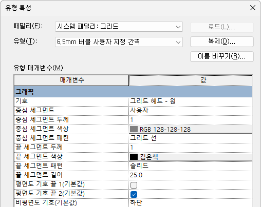 이러한 사용자화 작업을 수행하려면 그리드 유형을 수정합니다. 뷰에서 해당 유형의 모든 그리드 선에 변경사항이 반영됩니다.
