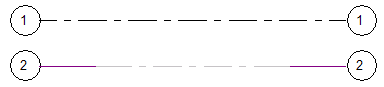 - 그리드 선의 중심 세그먼트를 숨겨 간격을 작성하고 뷰에 끝 세그먼트만 표시합니다. (버블 간격 그리드 유형을 수정하거나 버블 간격 그리드 유형을 직접 작성합니다.)
