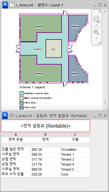 면적을 작성한 후 다음과 같은 방법으로 건물 모델에서 면적을 제거할 수 있습니다.