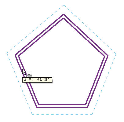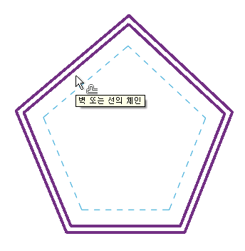 숫자 옵션을 사용하여 간격띄우기 거리를 지정한 경우에는 다음과 같이 하이라이트된 요소에서 커서가 있는 방향으로 지정된 거리에 미리보기 선이 표시됩니다.