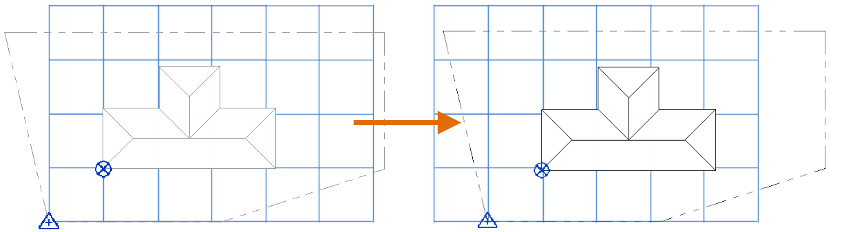 점에서 좌표 지정 도구를 사용하여 모델에서 참조점을 선택하고 해당 참조점에 대한 새 좌표 세트를 지정합니다. 전체 모델, 측량 기준점 및 프로젝트 기준점이 서로 간의 근접성을 유지하면서 이동합니다. 해당 좌표가 변경되어 모델의 새 위치를 반영할 수 있습니다.