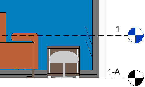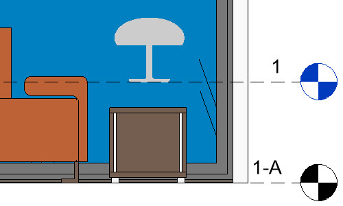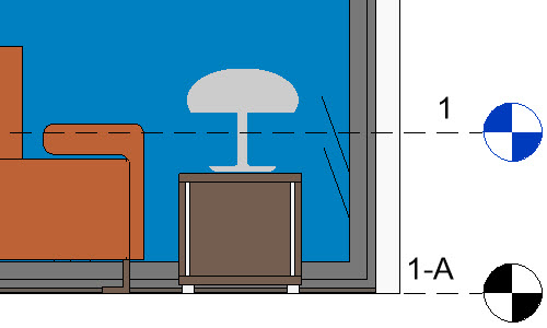 예를 들어, 사용자는 거실 테이블에 배치할 테이블 램프의 3D 모델을 가져오려 할 수 있습니다. 거실 레벨(1-A)은 레벨 1보다 약간 낮습니다. 램프를 가져오면 램프는 레벨 1에 배치되므로 테이블 위에 뜬 상태로 표시됩니다.