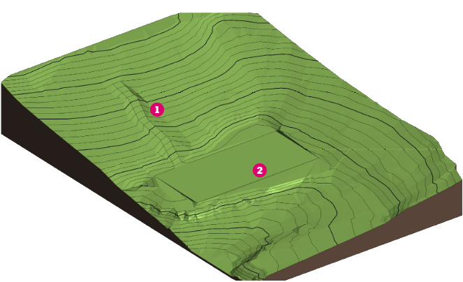 예를 들어, 지형면으로 작업할 때 표면을 따라 분할선을 배치하여 경로 경로를 작성하거나