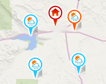 기본적으로 지리적 위치와 가장 가까운 기상 관측소를 표시합니다. 기상 관측소를 변경하려면 다른 핀을 클릭하거나 기상 관측소 리스트에서 기상 관측소를 선택합니다.