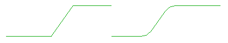 반지름 값을 지정하면 선 세그먼트 사이의 지정된 반지름에 모깎기가 작성되어 둥글게 처리된 선 체인을 작성할 수 있게 허용합니다. 모깎기를 표시하려면 한 선을 다른 선의 끝에 결합해야 합니다. 선이 두 개 이상의 선에 연결되어 있는 경우 모깎기를 작성할 수 없습니다.