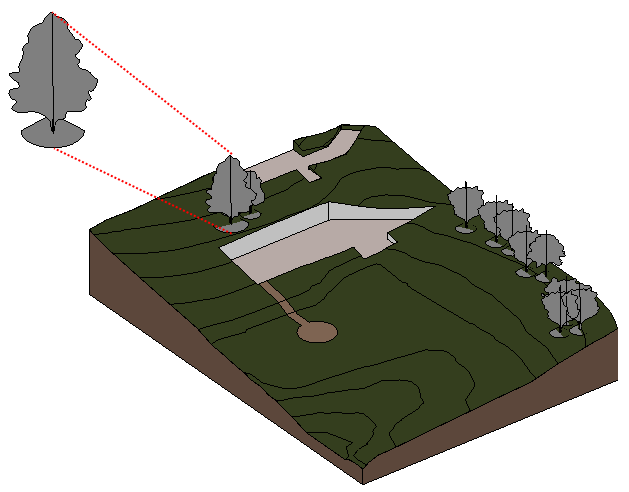 트리, 유틸리티 막대 및 소화전과 같은 대지 특정 구성요소를 대지 평면에 배치할 수 있습니다.