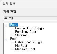 - 설계 옵션 대화상자의 왼쪽 리스트에서 옵션을 추가할 설계 옵션 세트를 선택합니다.