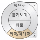 SteeringWheel은 여러 일반 탐색 명령을 단일 인터페이스로 결합합니다. SteeringWheel은 모형을 볼 수 있는 경우에 사용됩니다.