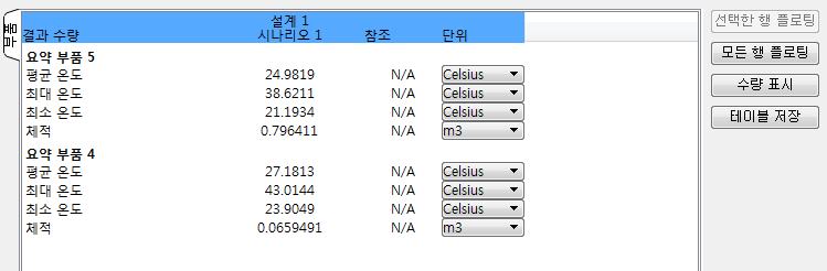 결과 부품은 선택한 부품의 온도를 결정하는 데 이상적입니다. 여러 부품의 결과를 비교하려면 요약 부품으로 지정하고 출력 막대의 [임계 값] 탭에서 결과를 확인합니다.