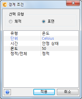 모형에 1개의 속도 경계 조건, 2개의 온도 경계 조건 및 1개의 압력 경계 조건이 있습니다.