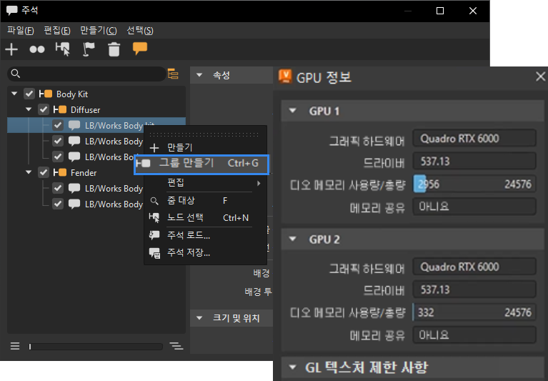 GL 정보 윈도우의 이름이 GPU 정보로 변경되었으며, 드라이버 버전 및 메모리 사용량과 같은 중요한 정보를 더 빠르게 살펴볼 수 있도록 UI가 개선되었습니다.