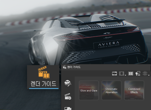 작업을 더 수월하게 해주는 또 다른 추가 기능은 렌더 가이드입니다. 라이브 참조를 통해 VRED로 데이터를 전송하고 인상적인 이미지를 빠르게 만들려는 Alias 사용자에게 적합한 출발점입니다. 렌더 가이드의 목적은 장면의 좋은 모습을 구현하는 데 필요한 가장 중요한 기능을 한곳에 요약해 두는 것입니다. 따라서 신규 사용자나 일반 사용자는 가이드에 따라 영화 같은 효과를 구현할 수 있는 간편한 마법사를 사용할 수 있습니다. 이 모듈은 가장 필수적인 기능을 결합하고 설정을 자동화하여 최소한의 노력과 전문 지식으로 훌륭한 이미지를 만들 수 있도록 지원합니다.