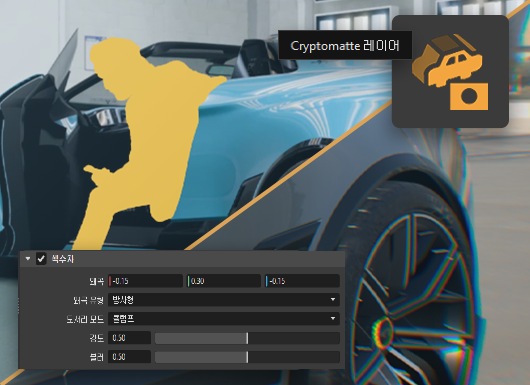 Vulkan의 도입 외에도 VRED의 렌더링 기능과 관련된 더 많은 측면이 추가 및 개선되었습니다. 이제 렌더 레이어 모듈을 통해 사용자 지정 또는 사용자 정의 Cryptomatte 렌더 패스를 생성할 수 있습니다. 이를 통해 사후 처리 워크플로우를 위한 마스크 작성 및 할당을 보다 세부적으로 제어할 수 있습니다. 출력은 각 레이어에 별도의 마스크가 포함된 다중 레이어 EXR 파일입니다.