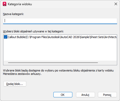 Metoda tworzenia listy bloków objaśnień zgodnych z bieżącą kategorią widoków.
