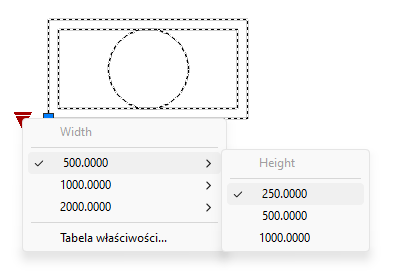 Jeśli wartości parametrów w odniesieniu do bloku dynamicznego odpowiadają wierszowi wartości właściwości wejściowych w tabeli przeglądowej, to odpowiednie wartości właściwości tabeli przeglądowej zostaną przypisane do odniesienia do bloku. Te właściwości i wartości przeglądania wyświetlane są na palecie Właściwości w polu Niestandardowe.
