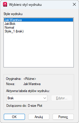 Ustawia tabelę stylów wydruku dołączoną do bieżącego rysunku. Tabela stylów wydruku definiuje style wydruku.