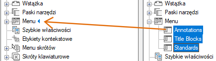 W edytorze Dostosuj interfejs użytkownika (CUI), na karcie Przenoszenie, w lewym panelu kliknij przycisk Otwórz plik adaptacji.