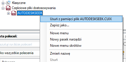 Zostaną wyświetlone wszystkie częściowe pliki CUIx wczytane w głównym pliku CUIx.