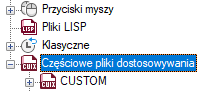 Częściowe pliki CUIx wczytane do głównego pliku CUIx są wymienione na liście w węźle Częściowe pliki ustawień.