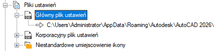 - W Eksploratorze plików wybierz <litera dysku>:\Users\<nazwa profilu użytkownika>\AppData\Roaming\Autodesk\<nazwa produktu>\<numer wersji>\<język>\support\<nazwa pliku adaptacji>.cuix.