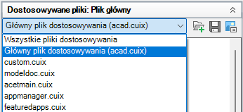 - Wybierz Główny plik dostosowywania <nazwa pliku> lub jeden z wczytanych plików CUIx w celu ustawienia go jako pliku roboczego.
