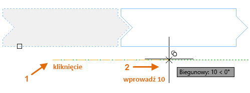 Następnie przesuń kursor w prawo na podstawie kąta śledzenia biegunowego, aby zachować kierunek poziomy, a następnie wprowadź wartość 10 dla odległości. Ponownie naciśnij klawisz Enter lub spację, aby zakończyć polecenie.