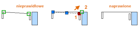Odległość i kierunek określone przez punkty końcowe w punktach 2 i 3 na ilustracji zostaną zastosowane do prostokąta po prawej stronie. To dobry sposób na określanie istniejących odległości na potrzeby przesuwania i kopiowania obiektów.