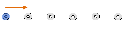 W przypadku większej liczby kopii wypróbuj opcję Szyk polecenia KOPIUJ. Tutaj pokazano na przykład liniowy układ głębokich pali fundamentowych. Z punktu bazowego należy określić liczbę kopii i odległość między środkami.
