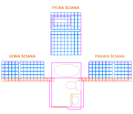 Skorzystanie z symetrii między lewą a prawą ścianą pozwala zaoszczędzić wiele pracy. Wystarczy utworzyć płytki na jednej ścianie, a następnie odbić ścianę względem środka pomieszczenia.