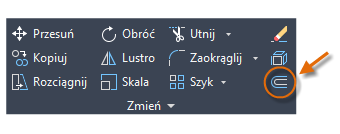 Większość modeli zawiera wiele równoległych linii i krzywych. Tworzenie ich za pomocą polecenia ODSUŃ jest łatwe i wydajne. Kliknij narzędzie ODSUŃ lub wprowadź literę O w oknie polecenia.