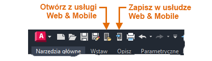 W przypadku konieczności dostępu do rysunków ze zdalnej lokalizacji przydatne będą polecenia Zapisz na koncie aplikacji internetowej i mobilnej oraz Otwórz z konta aplikacji internetowej i mobilnej.