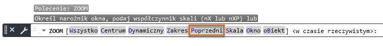 Można szybko przechodzić wstecz między kilkoma poprzednimi widokami, wprowadzając polecenie ZOOM w oknie poleceń, a następnie wybierając opcję Poprzedni.