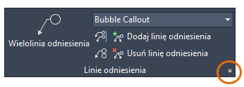 Na wstążce kliknij kartę Opisz i odszukaj panel Linie odniesienia. Na panelu widać, że bieżącym stylem wielolinii odniesienia jest styl Objaśnienie typu chmurka.