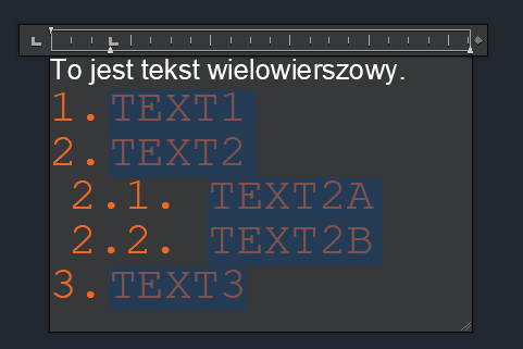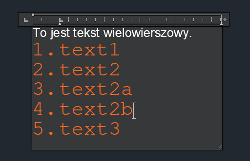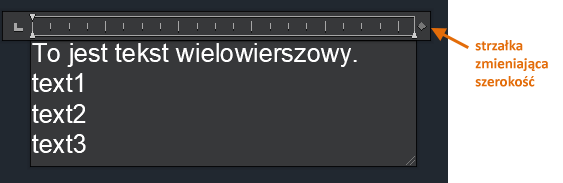 Uwaga: Aby przekształcić tekst wielowierszowy w oddzielne obiekty tekstu jednowierszowego, w wierszu polecenia wprowadź r (ROZBIJ) i wybierz obiekty tekstu wielowierszowego do rozbicia.