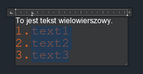 Formatowanie znaków w tekście wielowierszowym